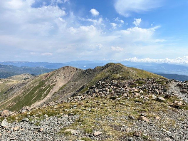 The hike begins in the Taos Ski Valley and climbs gently upwards through ponderosa pines until reaching a fork about two miles into the hike. At the fork, you have the option to hike a few more minutes straight and reach Williams Lake, a small but stunning alpine lake that sits in the basin of the peaks, or turn right and continue your climb. If you don’t hike to the lake on your way up, make sure to add it in on the way back down; the short detour is worth it. After another mile, the trail reaches the tree line and enters an alpine meadow with grasses and wildflowers. Bighorn sheep and pika are often found here. This is the most difficult part of the trail as it climbs 800 feet in less than a mile, with portions on loose gravel. Once you reach the saddle, it’s just a short push to the top.